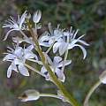 Drimia fragrans (Jacq.) J.C.Manning & Goldblatt, syn. Tenicroa fragrans (Jacq.) Raf.), grows on sandy flats in the northwest Cape. Plants grow 30 to 80 cm high and the leaves are wiry and enclosed in a papery neck. Flowers are in an elongated raceme with elliptical tepals. Photos from iNaturalist were taken by linkie in the Biedouw Valley Youth Camp in September and shared under a CC BY-NC license.
