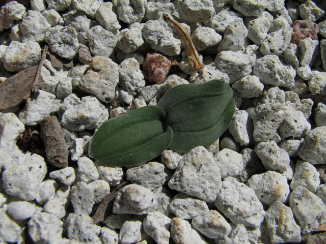 Drimia platyphylla (B.Nord.) J.C.Manning & Goldblatt, syn. Rhadamanthus platyphyllus B.Nord., is a bulbous species from Namaqualand, the Richtersveld, parts of the Little Karoo, and Caledon, near the south coast. The leaves are greyish blue, with tiny, almost indistinct flowers. Height: 3-15 cm. The plant is a winter grower, dropping its leaves and then producing flowers in early summer a few weeks after the leaves have dropped. Conditions for growing Massonia should be suitable for growing this genus. I grow this plant in 75% pumice and 25% oak leaf mold. Too much water on the leaves can cause rotting. Seeds should be sown in the fall in a well drained mix (I used 50% perlite and 50% organic material). Cover the seeds with a thin layer of seedling mix. They should germinate in about 2 weeks. Seedlings tend to get a lot of water during the rainy season but do not seem to be susceptible to rotting like adult leaves. The information above and photos below were provided by Nhu Nguyen.