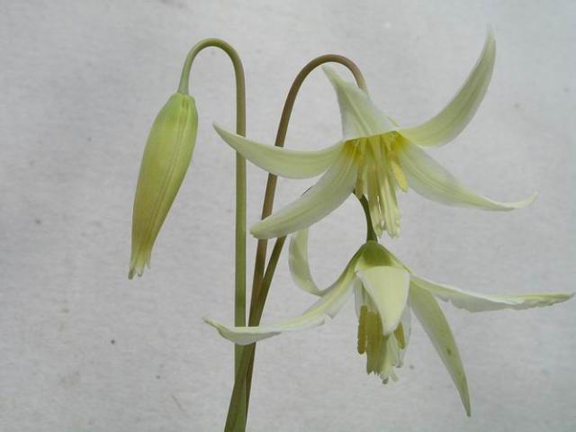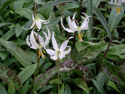 Erythronium is a genus of about 20 species in the Liliaceae family. Most of the species are from Western North America but there are also a few in eastern North America and Eurasia. They are woodland or mountain meadow plants enjoying humus rich but well drained soil. They bloom in the spring. Erythronium species and cultivars h-o are found on this page.