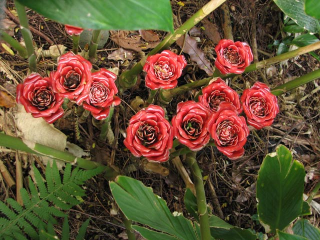 Etlingera corneri Mood & Ibrahim also known by the exotic name of Siam Rose, is native to Thailand. Height range: 4-6 ft. The photos below were taken at the Lyon Arboretum, Honolulu HI by Nhu Nguyen.