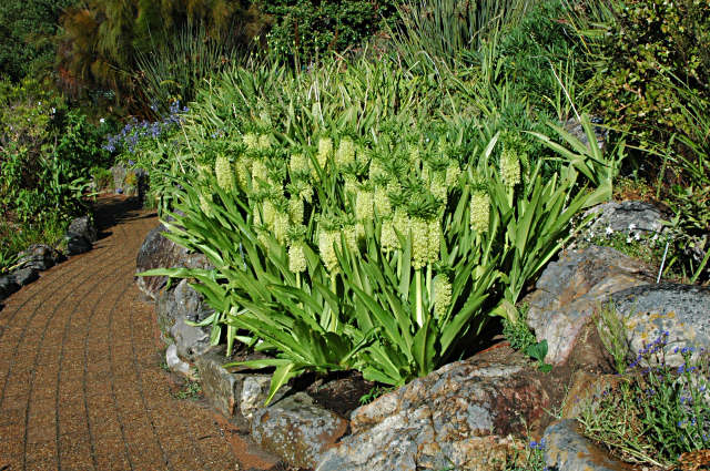 Eucomis is a southern African genus in the Hyacinthaceae family. Plants are commonly known as Pineapple lilies because in many of the species the blooms resemble a pineapple. Most of the species are found in the summer rainfall areas of South Africa, some at higher elevations. Plants from a-f are found on this page.