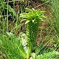 Eucomis autumnalis ssp. clavata (Baker) Reyneke grows to 30 cm and is found in damp grassland, on slopes, or at the foot of cliffs over quite a wide area of the Drakensberg, including KwaZulu-Natal and Lesotho. It is also found in the Eastern Cape. Leaves of this species have margins that are crisped and wavy. The creamy green flowers are on a stout stem, club-shaped and tightly packed. Photos taken by Mary Sue Ittner at Gaika's Kop and Naude's Nek in the Eastern Cape.
