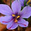 Crocus serotinus 'Poseidon' This named variety has deep colored purple blooms on very short stalks, and also rather fragrant. It flowers later than most other autumn crocus. Height range: 15-30 cm. Photo by Mark McDonough.