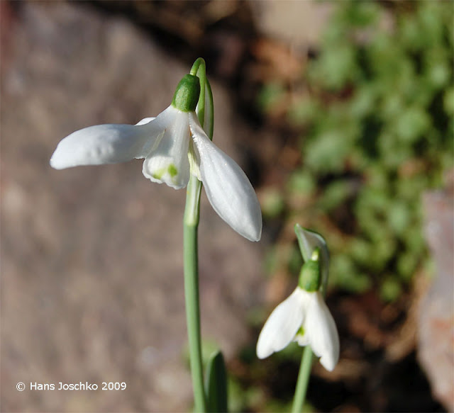 Galanthus transcaucasicus Fomin is distributed from S. & E. Transcaucasus to N. Iran. Photos by Hans Joschko who reports his plants are 6-8 cm high.