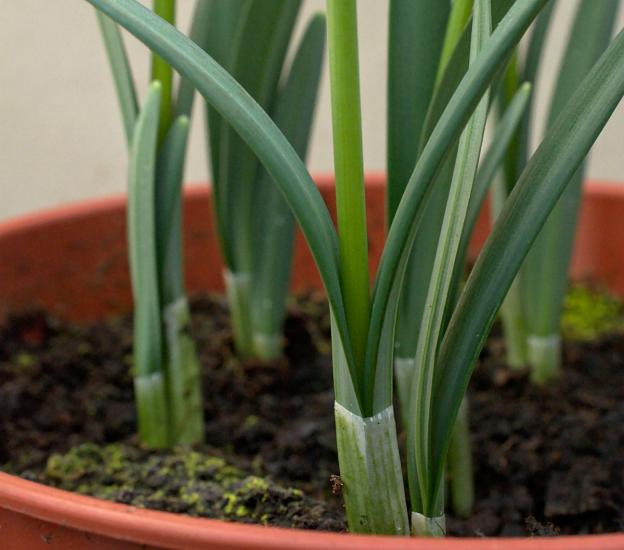 A key feature in distinguishing different species of snowdrop is the vernation (arrangement) of the emerging leaves. For Galanthus nivalis they are applanate, for Galanthus elwesii they are supervolute (or according to some convolute), and for Galanthus plicatus they are explicative. Photos 1 and 2 below show the leaves of Galanthus elwesii and photos 3 and 4 those of Galanthus nivalis. It is apparent the leaves of Galanthus elwesii wrap around one another. See Galanthus elwesii for more photos comparing these species.
