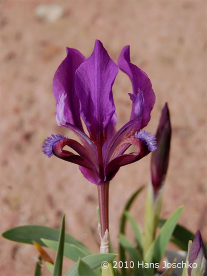 Iris reichenbachii Heuff. from Greece, Bulgaria, and Romania has yellow or purple flowers. Height range: 10-30 cm. Photo by John Lonsdale.
