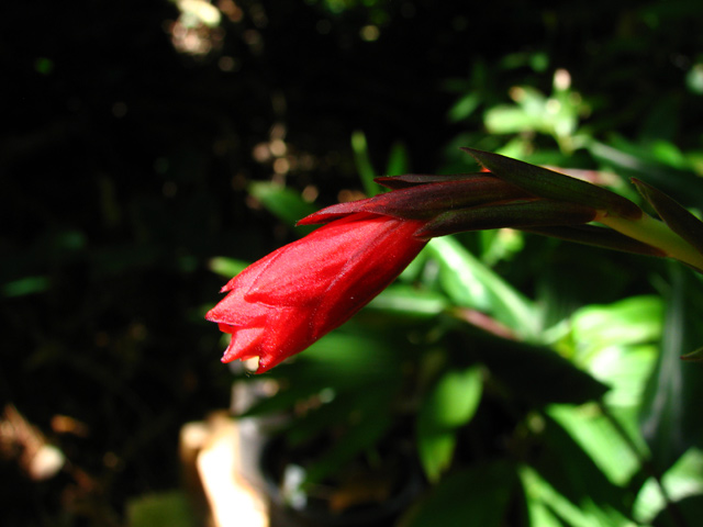 Globba atrosanguinea Teijsm. & Binn. is native to Sumatra and Borneo. It is a beautiful species that grows fast in warm areas (although not necessarily tropical). The flowers are a beautiful bright red and bulbils are usually produced from the inflorescence. It loves water, moderate light, and fertilizer while in active growth. Height range: 1-2 ft. The photos below were taken by Nhu Nguyen.