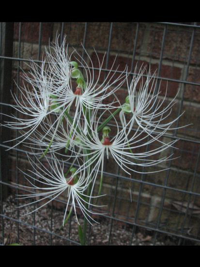 Habenaria medusa Kraenzl. is sometimes wrongly written as Habenaria medusae. It is native to southeast Asia. The inflorescence reaches about 18 inches (40 cm) in height and the flowers are 2 to 3 inches (5 to 7.5 cm) across. It is not an easy species to cultivate and requires very good orchid conditions with a lot of moisture and air movement. After flowering, it enters a dormant stage, where the tubers must remain in a state between moist and dry. When new shoots appear, increase watering to keep the medium just moist until vigorous growth commences. Photos 1-3 were taken September 2009 by Eugene Zielinski of a cultivated plant (bought as H. myriotricha). The other flower in the first picture is Pecteilis sagarikii. Photo 4 was taken by Nhu Nguyen.