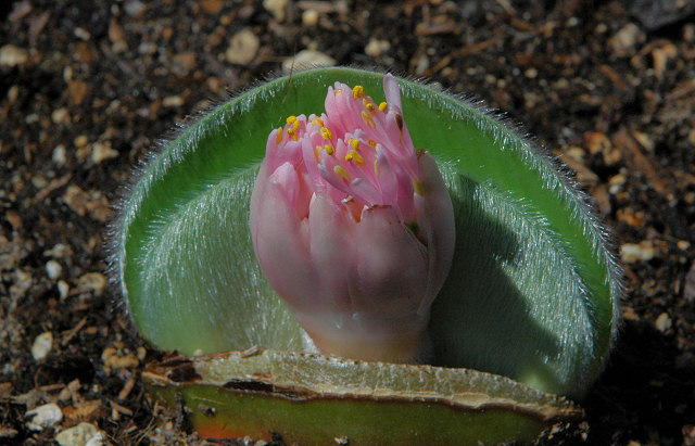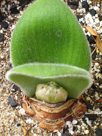 The photos below were taken by Mary Sue Ittner of plants obtained from Cameron showing the buds and the flower starting to open next to the start of new hairy leaves.