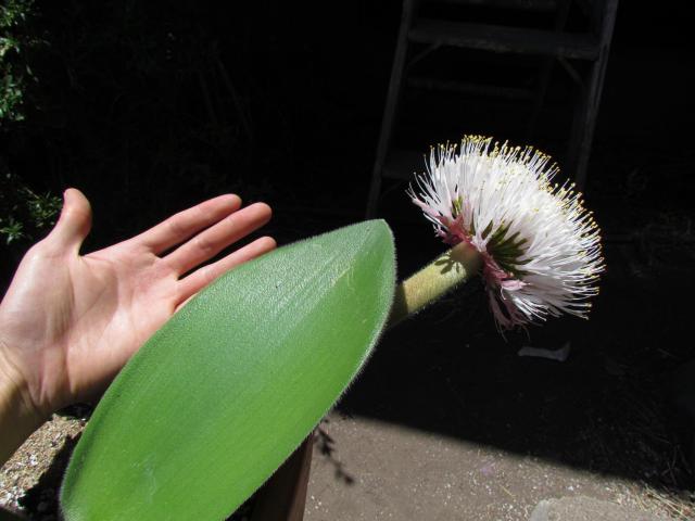 Haemanthus humilis Jacq. is represented by many small, varying populations. The species has round or compressed bulbs with even tunics and lax unspotted leaves that range from smooth to densely hairy. Flowers are white to deep pink with stamens well exserted or equal in length to the segments. Flowers are mostly present with the leaves or appear slightly before. There are two subspecies and they can be differentiated based on their inflorescence, number of spathe valves, and stamen exsertions. This species requires summer water and is happy with a dilute amount of fertilizer during growth. It should be grown in part shade. The dormancy period tends to be short and the soil should be kept dry, although the bulbs seem happiest when the soil does not go bone dry.