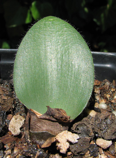 The photos below are of a plant grown by Uluwehi Knecht from Balfour, Mpumalanga that has the typical glabrous adaxial and hirsute abaxial leaf surfaces. Photos 1-5 from Nhu Nguyen and photo 6 by Uluwehi Knecht shows the broad leaf span of fully expanded leaves. Note that the leaves are a little tender from several cold nights of light frost.