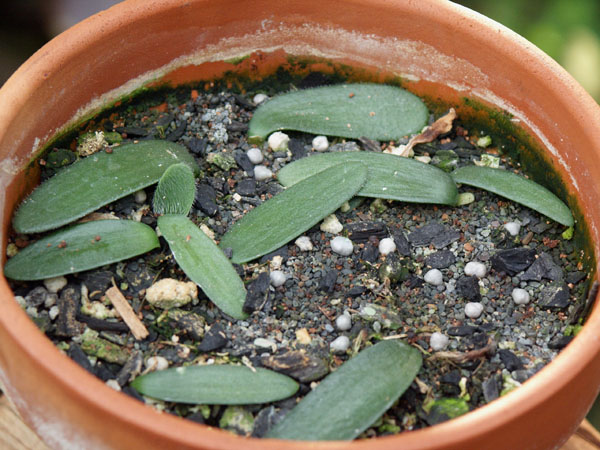 Photo 1 is of a pot of nine month old seedlings grown in Honolulu, Hawai`i by Uluwehi Knecht. Photos 2-3 show the progression of growth of one of these seedlings in year 2 and year 3. The last photo from Doug Westfall shows a dwarf form that he grows that has leaves that are about 1 inch long by about 1/2 in wide.