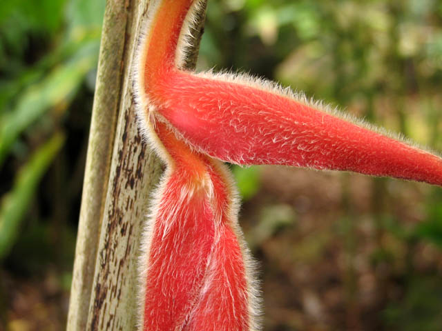 Heliconia hirsuta L.f. 'Costa Flores' is native to Mexico, Brazil and Peru. Height range: 3-6 ft. Photo taken by Nhu Nguyen.