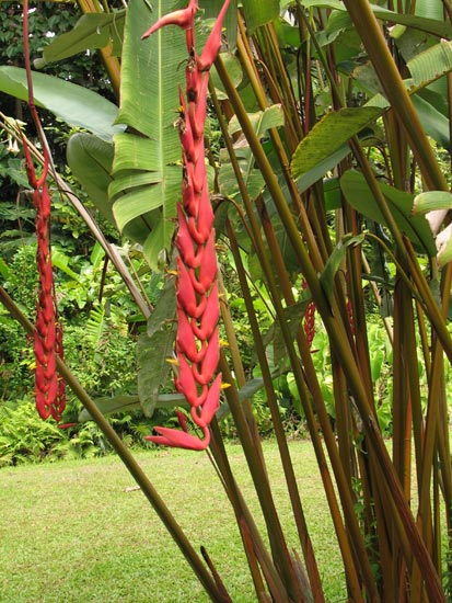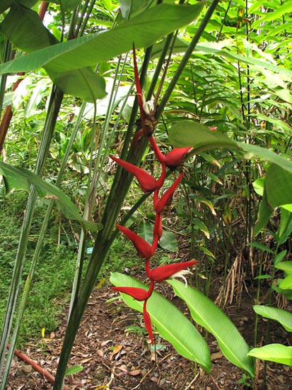 Heliconia pendula Wawra is native to Guyana and northern South America. Height range: 8-11 ft. Photos taken by Nhu Nguyen.