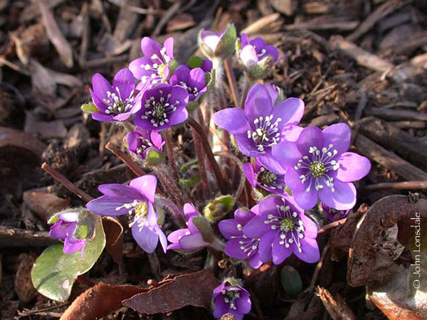 Hepatica Mill. is a genus in the Ranunculaceae family native to Europe, parts of Asia, and Eastern North America. All have blue flowers, sometimes white or pink, and are rarely offered in doubled forms and are very expensive. Many species are so similar, even across oceans, that recent taxonomists have lumped most into the all inclusive Hepatica nobilis, merely as subspecies or even simply just as varieties. Most of the species have fibrous roots, but one, Hepatica nobilis, has a short thick, rhizomatous rootstock.