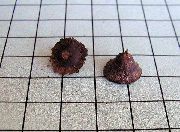 Hesperantha latifolia (Klatt) M.P.de Vos is a small (3 to 8 cm) species from Namaqualand with bright pink long tubed flowers that are open during the day. This species is pollinated by long proboscid flies. Photos below from Mary Sue Ittner are of plants grown from seed and blooming in Northern California in February and of corms on a 1 cm grid.