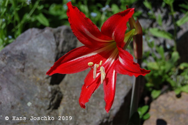 Hippeastrum × johnsonii photos from Jay Yourch and Hans Joschko. It is a primary hybrid of H. reginae and H. vittatum.