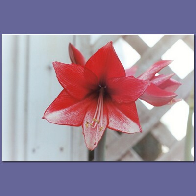 Hippeastrum 'Fairy Tale' is a small selection with red and white striped flowers. Photo taken June 2007 by Jay Yourch.