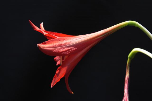 Hippeastrum solandriflorum (Lindl.) Herb. in 2025 is considered to be a synonym of Hippeastrum elegans (Spreng.) H.E.Moore., a species native from Costa Rica to Brazil. Deciduous, cool/dry in winter. It requires a deep pot; plant with neck of bulb at soil-level. Height range: 30-60 cm. Photo by Den Wilson.
