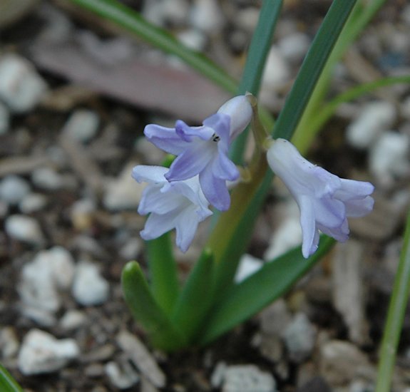 Hyacinthus orientalis ssp. chionophilus Wendelbo is an alpine subspecies from Turkey. This form has been easy to grow in Northern California, in a pot kept dry in summer. It has not increased so I usually plant it with something else. It usually blooms in March. Photos by Mary Sue Ittner taken different years. The last shows the bulb on a 1 cm grid.