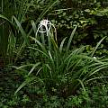 Hymenocallis henryae var. glaucifolia J.N.Henry & Gerald L.Sm. is a very rare subspecies found in just one county in the Florida panhandle. Photo from Charles Hunter who writes: "I snapped this picture a few years ago when I visited the area, and it isn't a perfect looking flower but was the only bloom of it I saw when I visited. It is one of just 2 species of Hymenocallis where the tepals are greenish, as opposed to the all white flowers seen in the rest of the Hymenocallis species." He continues that the other green-tepaled species, Hymenocallis palmeri, is much more common, but has narrower leaves and unlike this species, one flower versus two, per scape.