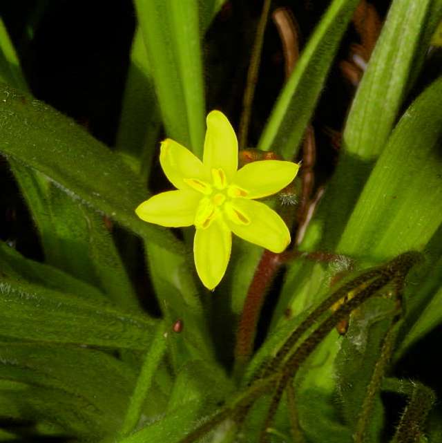 Hypoxis acuminata Baker is found in damp grassland in the Eastern Cape. It has hairy leaves in a spiral tuft and yellow flowers in spring. Height: about 30 cm. Photo by Cameron McMaster was taken in the Amatola Mountains of the Eastern Cape, South Africa.