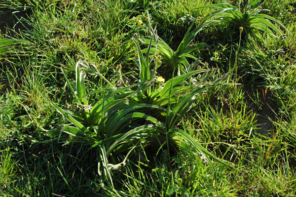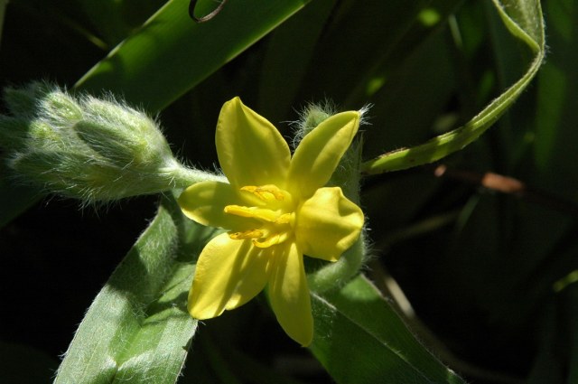 Hypoxis villosa L.f. is found on stony grassland and heath from Swellendam to KwaZulu-Natal. Growing from 15-25 cm, it has yellow flowers and spreading lanceolate hairy leaves. It usually flowers June to November. Photographs from Mary Sue Ittner of a plant identified by Dee Snijman that was flowering January 2010 on a cutting above a road near Cradock in the Eastern Cape.