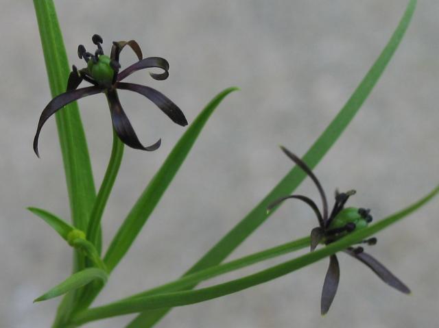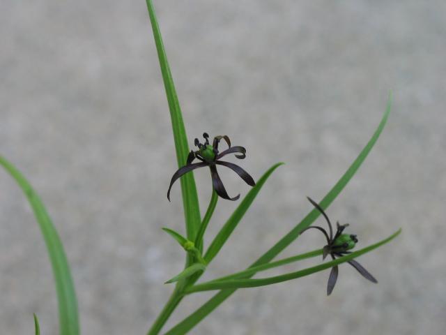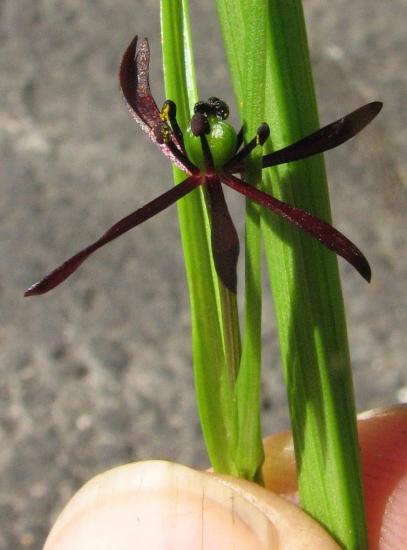 Iphigenia indica (L.) A.Gray ex Kunth is found in grass lands and pine forests in China, India, Indonesia, Myanmar, Nepal, Philippines, Sri Lanka, Thailand, Vietnam and Australia from sea level to over 2000 m. There are at least 12 synonyms for this species, including Melanthium indicum, Anguillaria indica, Lloydia melanantha and Hypoxidopsis pumila. The common name is 'Indian Grass Lily'. Plants are small, 10 to 25 cm high, and grow from corms around 10 mm in diameter; the flowers are less than 2 cm across with narrow petals, dark purple enough to appear black in life. Photos 1-4 from Jim Murrain. Photo 5 shows a closeup from Dylan Hannon.