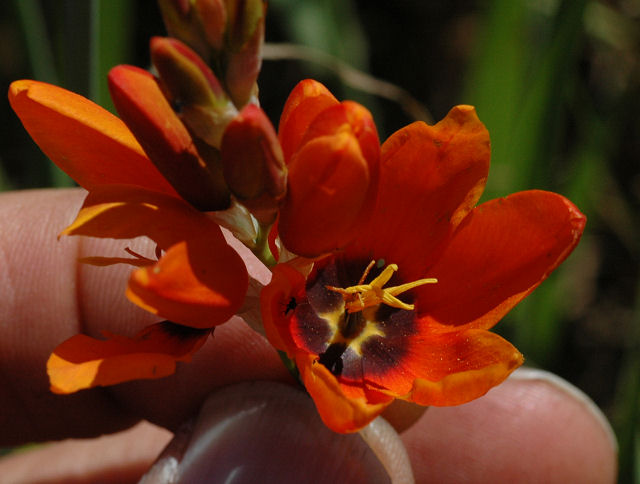 Ixia is a genus in the Iridaceae family with 100 species mainly from the western, southwestern, and southern winter-rainfall areas of the Northern, Western and Eastern Cape Provinces of South Africa. Information and photographs illustrating Ixia m-o can be found on this page.