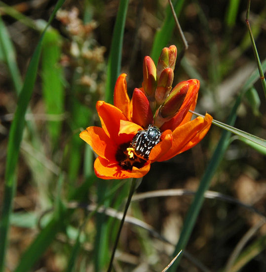 The first five photos taken below by Mary Sue Ittner and Bob Rutemoeller show plants in bloom on the way to Darling, West Coast, September 2006 in two different colored populations. The last group was being pollinated by beetles. The last photo was taken by Cameron McMaster also near Darling September 2011.