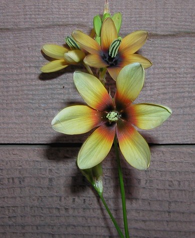Ixia odorata Ker Gawl. grows on sandstone and granite slopes in the northwest and southwest Cape. It has small yellow or cream fragrant flowers. Height range: 30-60 cm tall. The first two photos by Mary Sue Ittner. The last from Rod Saunders and Silverhill seeds.