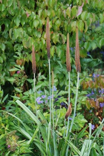 Kniphofia typhoides Codd is native to the Northern Province to KwaZulu-Natal where it grows solitary or in small groups in marshy areas from 1300 to 1800 m. The blue-green leaves are arranged in a fan and tend to be spirally twisted. The faintly scented inflorescence of short brown flowers resembles that of cattails (Typha spp.) hence the species ephithet typhoides = "resembling Typha". Flowering in the wild is from February to March according to Elsa Pooley. The photos below were taken by Ina Crossley from plants in her garden.