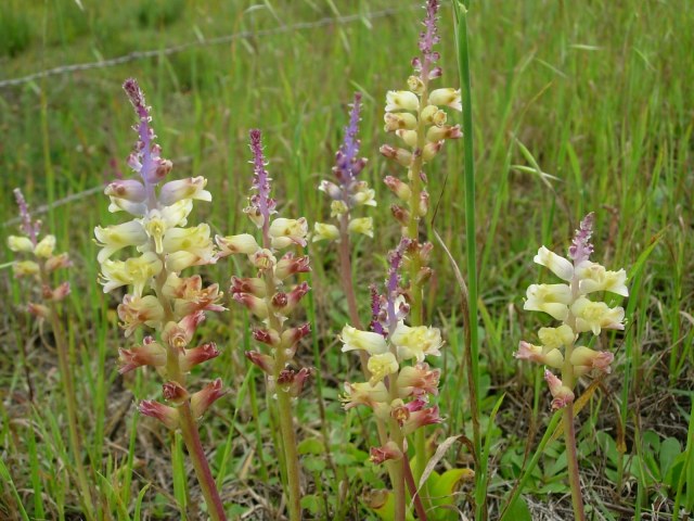 Lachenalia lutzeyeri G.D. Duncan is mostly known from the Grootbos Private Nature Reserve where it grows in full sun between sandstone boulders. Height: 20-40 cm. There it flowers from November to December. It is dependent on summer or autumn fires to flower. It has oblong-campanulate pink flowers with exserted stamens. Photos from iNaturalist taken by Vera Frith in October in the Overberg where it was growing on a limestone outcrop and flowering the first spring after a fire. Photos shared under a CC BY-NC license.