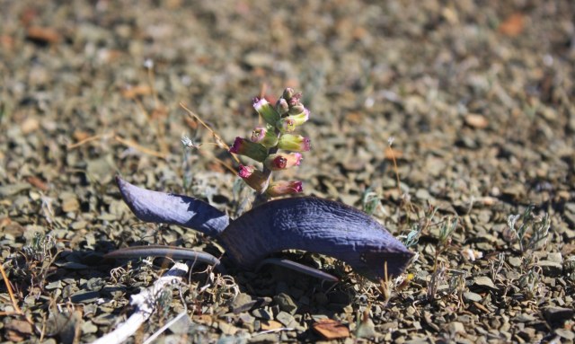 Lachenalia aurioliae G.D.Duncan is a variable species of arid habitats found in the Northern Cape, Little Karoo, and the Great Karoo. It flowers in habitat from June to August and is pollinated by honey bees. The broad lanceolate to ovate glaucous leaves are heavily spotted or banded with magenta on the bases. The perianth is urn-shaped, the outer tepals are light blue to gray with brown gibbosities, aging to dull red, and the inner tepals are white to yellowish green. Height range: 6-38 cm. The first three photos were taken by Alan Horstmann. The last photo from Margaret Fox was taken on a farm in the Tankwa Karoo in August 2022.