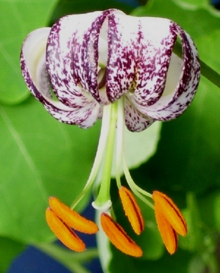 Lilium henryi Baker is native to the mountains of central China. Height: to about 8 ft. The first photo was taken by Isabelle Fleming. The second photo was taken by Arnold Trachtenberg who planted it in a sunny position in New Jersey where it has multiplied and flowers well. Photos 3 and 4 were taken by Janos Agoston. Photo 5 of a bulb by Pontus Wallstén.
