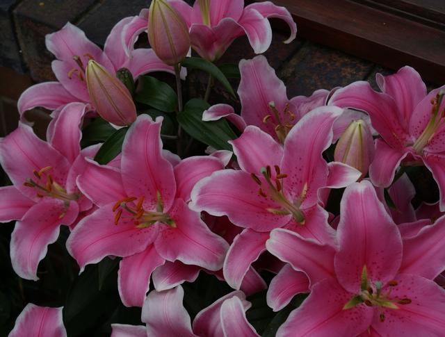 Lilium 'Sorbonne' is an Oriental hybrid, bred by the Dutch in the 1990's. This is an outstanding lily which produces many large upward facing scented flowers on stems about four feet high. It is fabulously pink. The photographs below by David Pilling show it flowering at the end of July in Northwest England. It would probably be good planted with L. 'Stargazer' which starts flowering when 'Sorbonne' has finished but has much smaller flowers.