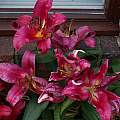 Lilium 'Pearl Lorraine' is a vigorous red tetraploid Asiatic. Flowers are 6 inches in size and the stems about 4 feet. Photographed in NW England at the end of June by David Pilling. The 'Pearl' series is usually attributed to Dr. Robert Griesbach, taking their names from his grandchildren. However according to this blog, Lorraine comes from another source.