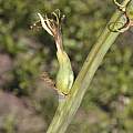 Manfreda virginica, now Agave virginica L. is native to the eastern United States. Photos 1-6 (row 1) are from August 2005 by Dennis Kramb and show various aspects of the seed pods and bloom stalks which can reach up to 7 feet, though most are around 4 to 5 feet. Images 7-9 (row 2) show the plant in bloom in Mark McDonough's garden in Massachusetts in July and early August 2008, producing a 6 foot tall stalk. The inflorescence is mostly composed of over-sized stamens and anthers, yet at the center of each flower is a tiny three-lobed whitish tube that offers surprising fragrance for something so insignificant in size. Image 10 is another view of the foliage.