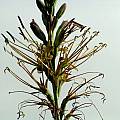 Manfreda Salisbury was a genus of robust herbaceous plants with rosettes of plain green or mottled, often thick, succulent leaves, now included in Agave. This genus is in the Agavoideae subfamily of the Asparagaceae family. The flowers are generally tubular, dull white, yellow, green, or brownish, solitary at the nodes, on a tall raceme or spike, and generally have some kind of scent. The stamens are exerted and brownish, greenish, yellowish, or whitish in color. The underground structures are cormous or rhizomatous. Approx. 28 species are native to the southeastern United States, Mexico, and Central America. They do best in full sun in a dry part of the garden. Night-flying hawk moths are frequent visitors to these summer or autumn blooms. Hummingbirds seem to love them also, often perching on the stalks in early morning.