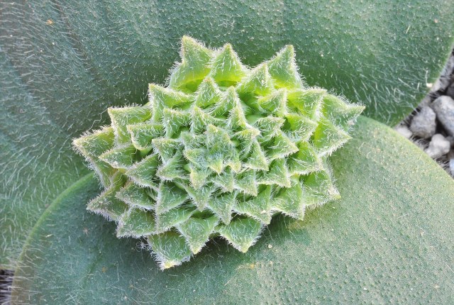 The first five photos below were taken by Gottfried Milkuhn of a plant grown from seeds collected in Napier. Photo 1 shows the first time flowering of this plant. The last photo from the book Plants of the Klein Karoo courtesy of Jan and Anne Lise Schutte-Vlok.