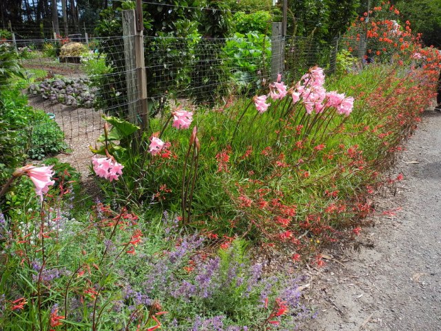 Amaryllis belladonna is native to South Africa, but has naturalized along the Mendocino Sonoma Coast. It has been planted in the gardens and is shown flowering in different years. Photos from Mary Sue Ittner and Bob Rutemoeller.