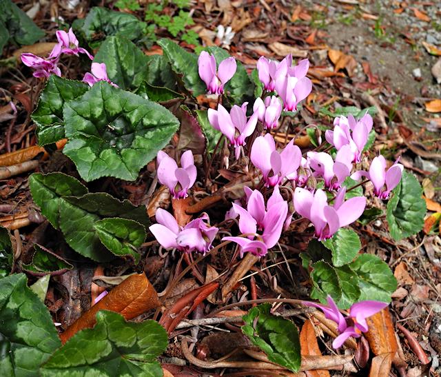 Cyclamen hederifolium has been planted next to some of the paths and was blooming the end of July 2014. Photos from Mary Sue Ittner.
