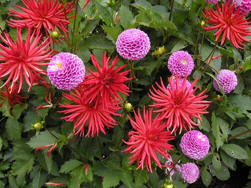 Dahlia cultivars are shown below. The display area for the dahlias is one of the more popular areas to visit in summer. The first photo taken 2018 from Bob Rutemoeller. The other photos of individual flowers taken by Mary Sue Ittner August 2004.