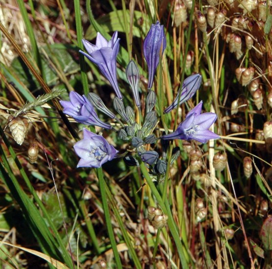 Triteleia laxa (Ithuriel’s Spear) that grows in this area is found in multiple habitats, grassy open areas near the ocean, and filtered light on the edge of forest and can be in flower in summer after the leaves have withered. Some of our populations are short with darker purple flowers, but others are tall and lighter. Photos below show many variations of plants photographed at Spring Ranch, Moat Creek, Point Arena Stornetta Public Lands, and near the Gualala River in Mendocino County and near the Gualala River and at Salt Point State Park in Sonoma County. Photos from Bob Rutemoeller and Mary Sue Ittner.
