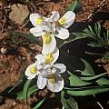 Moraea fergusoniae L.Bolus grows on clay slopes in the southwest Cape in renosterveld and has short lived white or blue flowers with yellow nectar guides. The first two photos were taken by Bob Werra. The third photo from Bob Rutemoeller shows one flowering in August 2006 near Villiersdorp. Some of the leaves were curled and some were not and there was a range of heights as well. The last three photos by Cameron McMaster were taken in the Overberg.