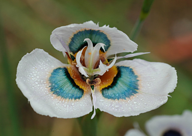 But M. villosa can also be found in other colors. Often these are quite rare in the wild, but have been preserved and shared in cultivation. The flowers can be purple, lilac, sometimes pink or orange or even cream or white with nectar guides on the outer tepals outlined in broad bands of dark color. Here are some examples. The first four photos were taken by Mary Sue Ittner in her Northern California garden. The fifth photo was taken by Colin Paterson-Jones at Versveld Pass on Piketberg, Western Cape.