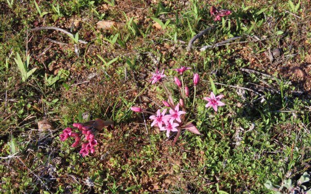 Gladiolus scullyi is found on silty clay and granite slopes in the northern winter rainfall areas. Photos 1-2 taken September 2006 by Bob Rutemoeller. Photos 3-4 taken by Cameron McMaster near Carolusberg September 2011.