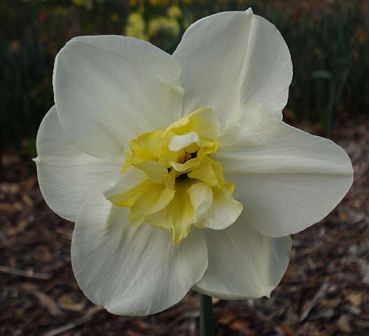 Narcissus 'Tricollet' is a mid to late season bloomer with white petals and a yellow cup split into three segments. Photo taken April 2007 by Jay Yourch.