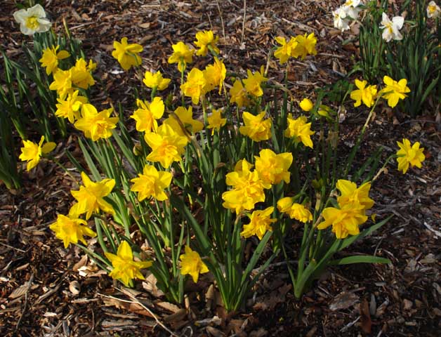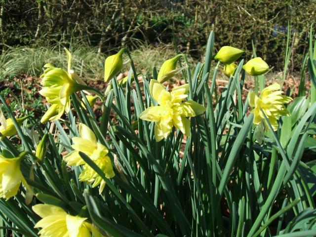 This page contains pictures and information about Narcissus classified under Division 4: Double Daffodils. Narcissus in this division have one or more flowers to a stem, with doubling of the corona (cup), perianth segments (petals), or both. Double daffodils often survive for a long time in the garden, and their flowers last much longer than single daffodils, but flowers can be too heavy for the stems.