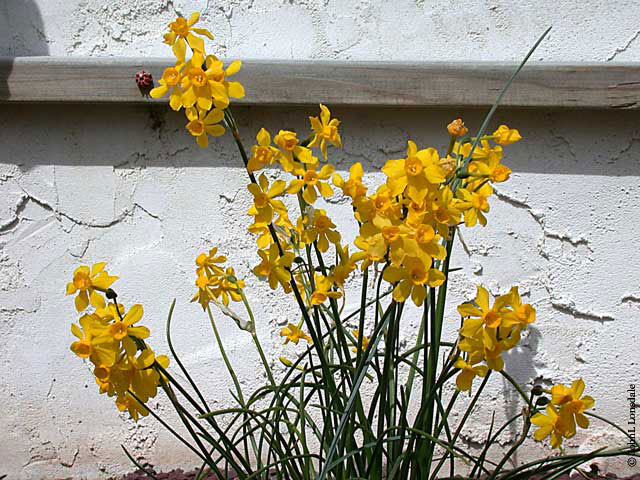 Unfortunately, the naming of species Narcissus is a mess. Bulb expert Brian Mathew reports that they can be difficult to classify, with various authors identifying anywhere from 26 species to more than 60. Because Narcissus have been in cultivation for so long, some plants believed to be species are known only in gardens, with no known wild populations to verify them. All of this confusion is reflected in commerce, where bulbs may be sold under a variety of different names. We've done our best to classify the following photos, but this page is definitely a work in progress. Please let us know if you find an error. The species d-j will be found below.
